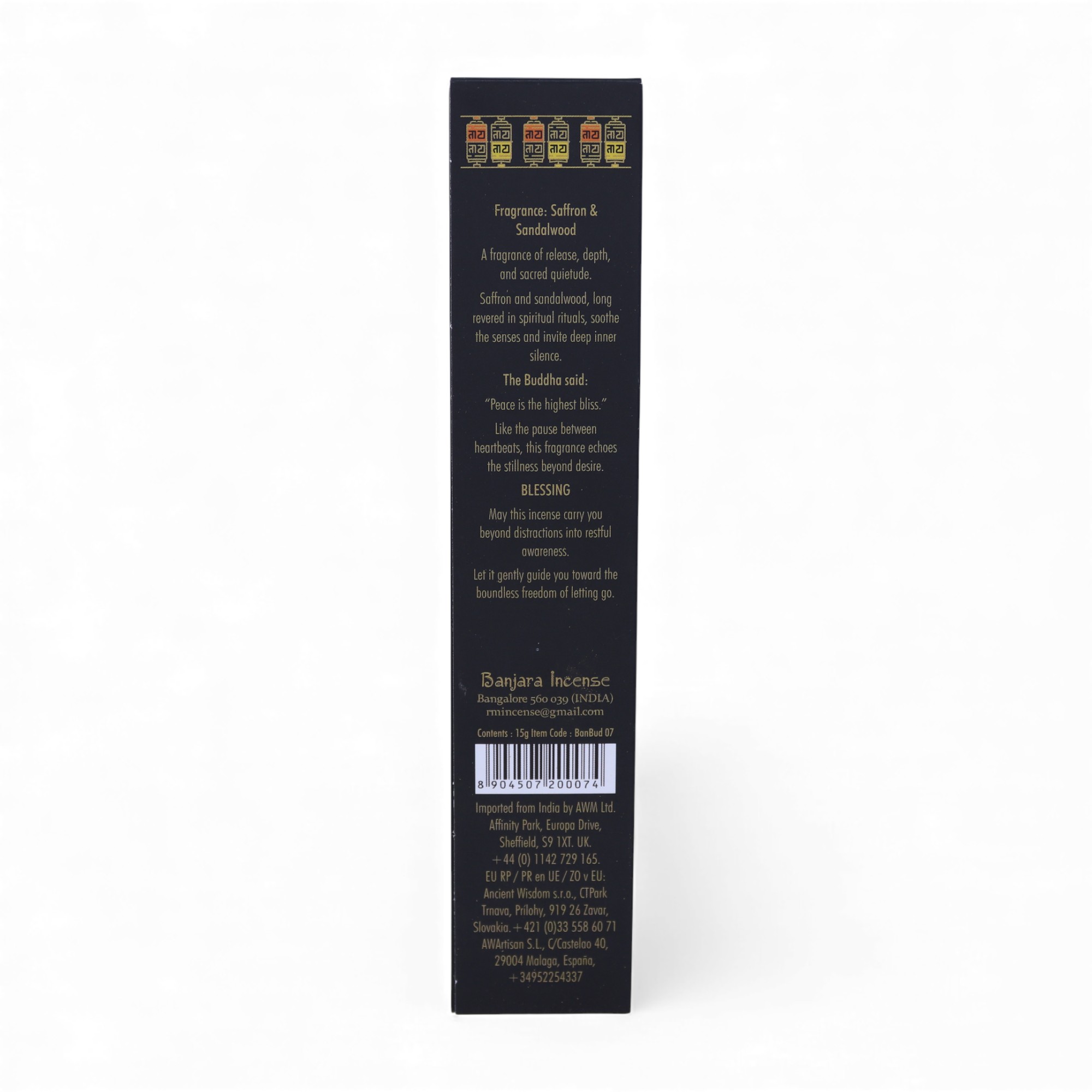 Zafferano e sandalo, da sempre presenti nei rituali spirituali, calmano i sensi e invitano a un profondo silenzio interiore.