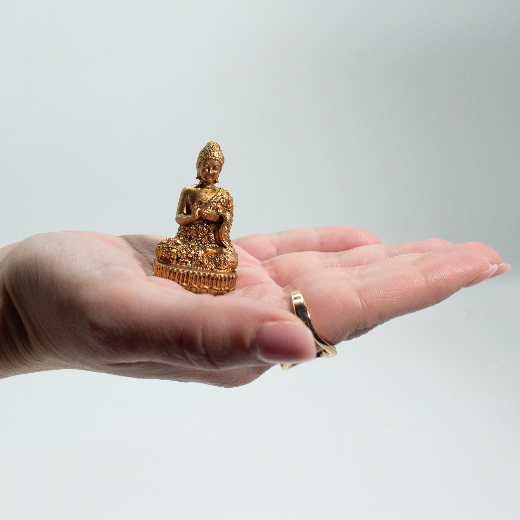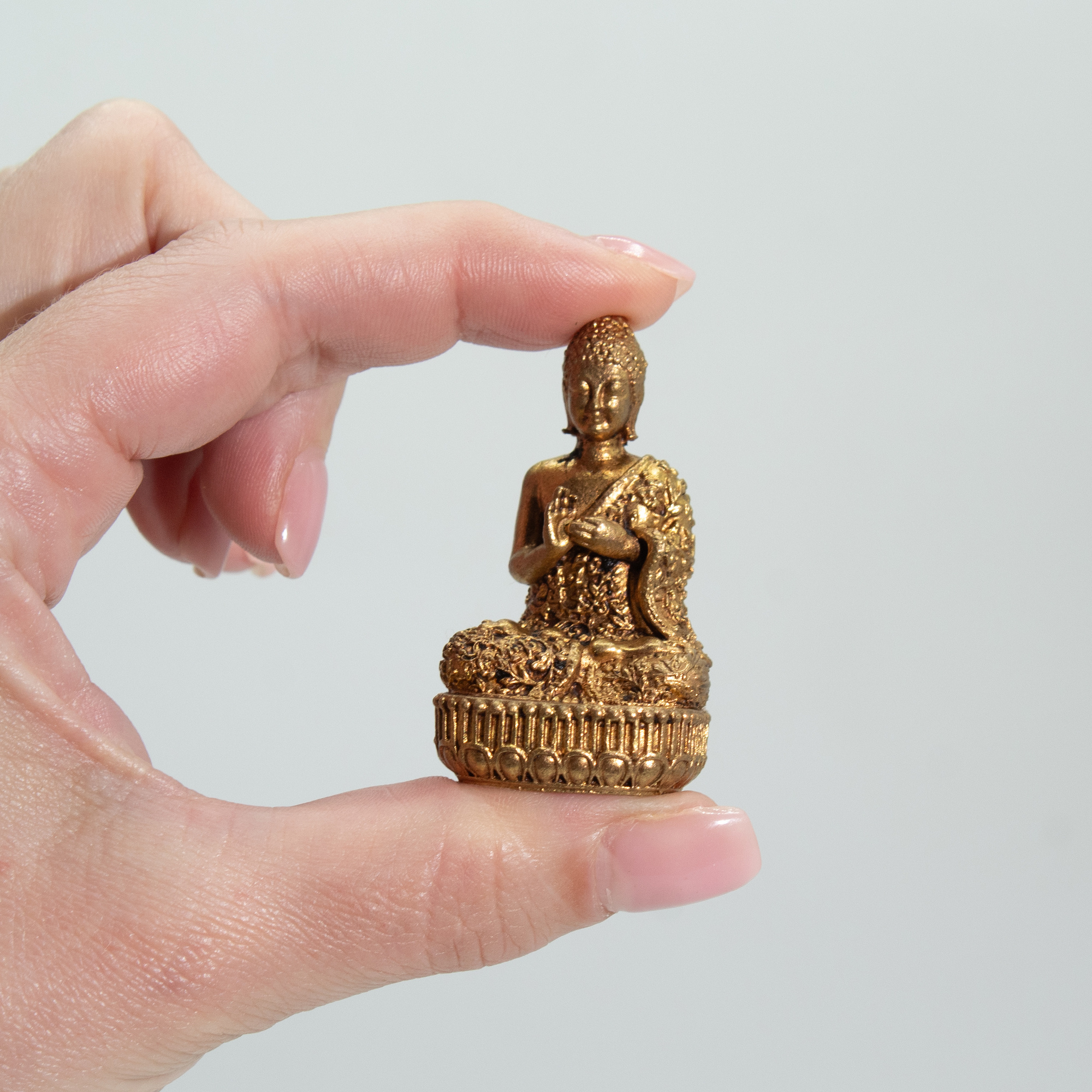 La Divinità Miniatura in Ottone – Buddha è una figura in ottone massiccio finemente lavorata, che unisce dettagli tradizionali a un formato compatto e versatile.