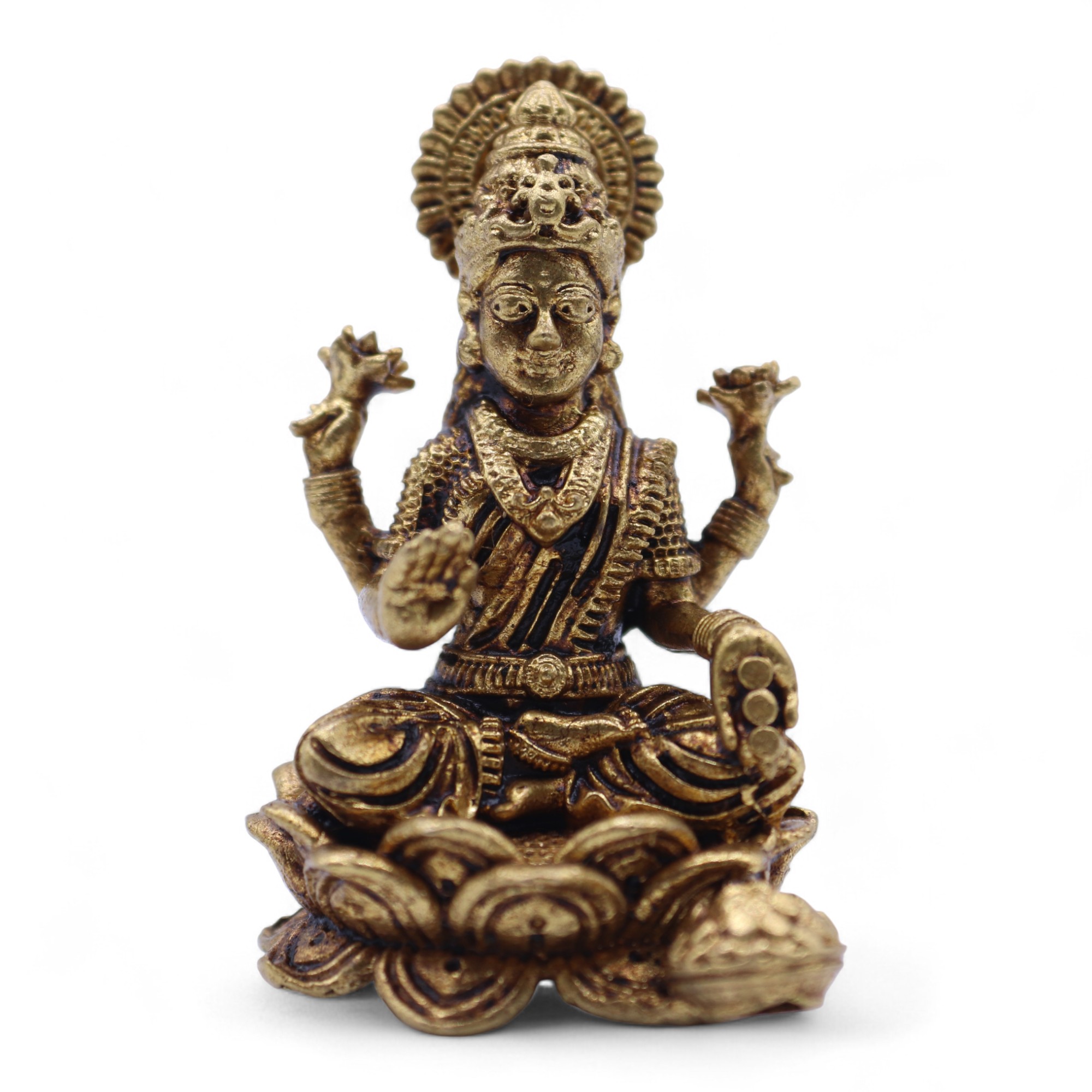 Questa Miniatura in Ottone di Laxmi presenta una raffigurazione finemente dettagliata della dea della prosperità, realizzata in una dimensione leggermente più grande, 37 mm, per una presenza ancora più significativa. La sua finitura ricca di dettagli la rende ideale per altari domestici, spazi di meditazione, collezioni devozionali o come dono simbolico.