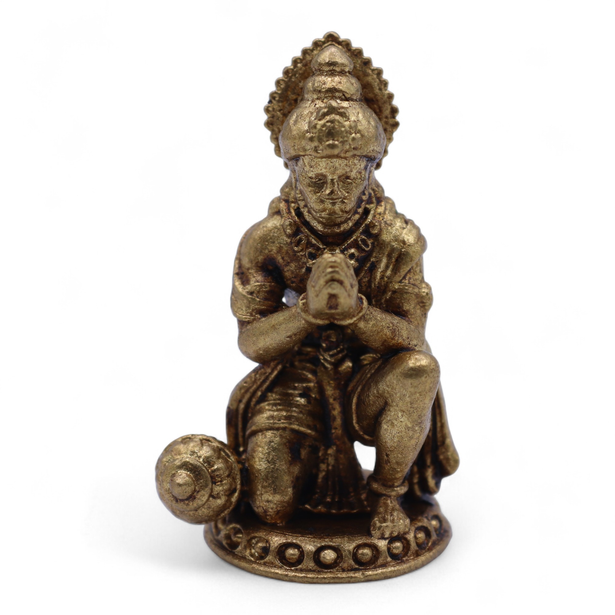 Questa miniatura in ottone raffigura Hanuman, una delle divinità più amate e venerate dell’induismo, simbolo di forza, protezione, coraggio e dedizione. Qualità che molti clienti cercano nei loro oggetti spirituali.
