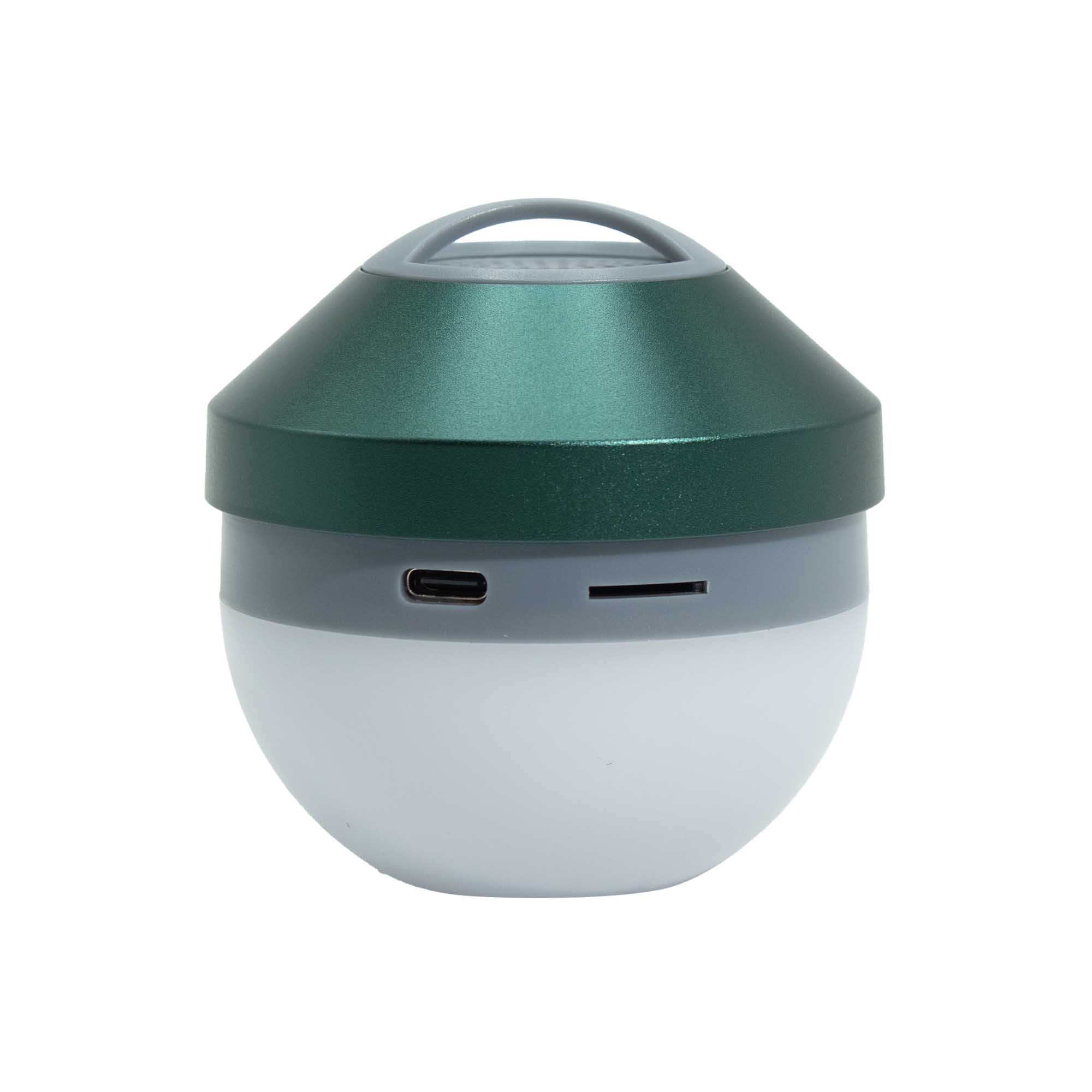 La Lampada Portatile con Gancio e Mini Cassa Bluetooth – Verde, in vendita all'ingrosso, combina suono e luce in un formato compatto, progettato per un uso flessibile sia in interni che in esterni. È ideale per giardini, terrazze, campeggi e spazi esterni temporanei.