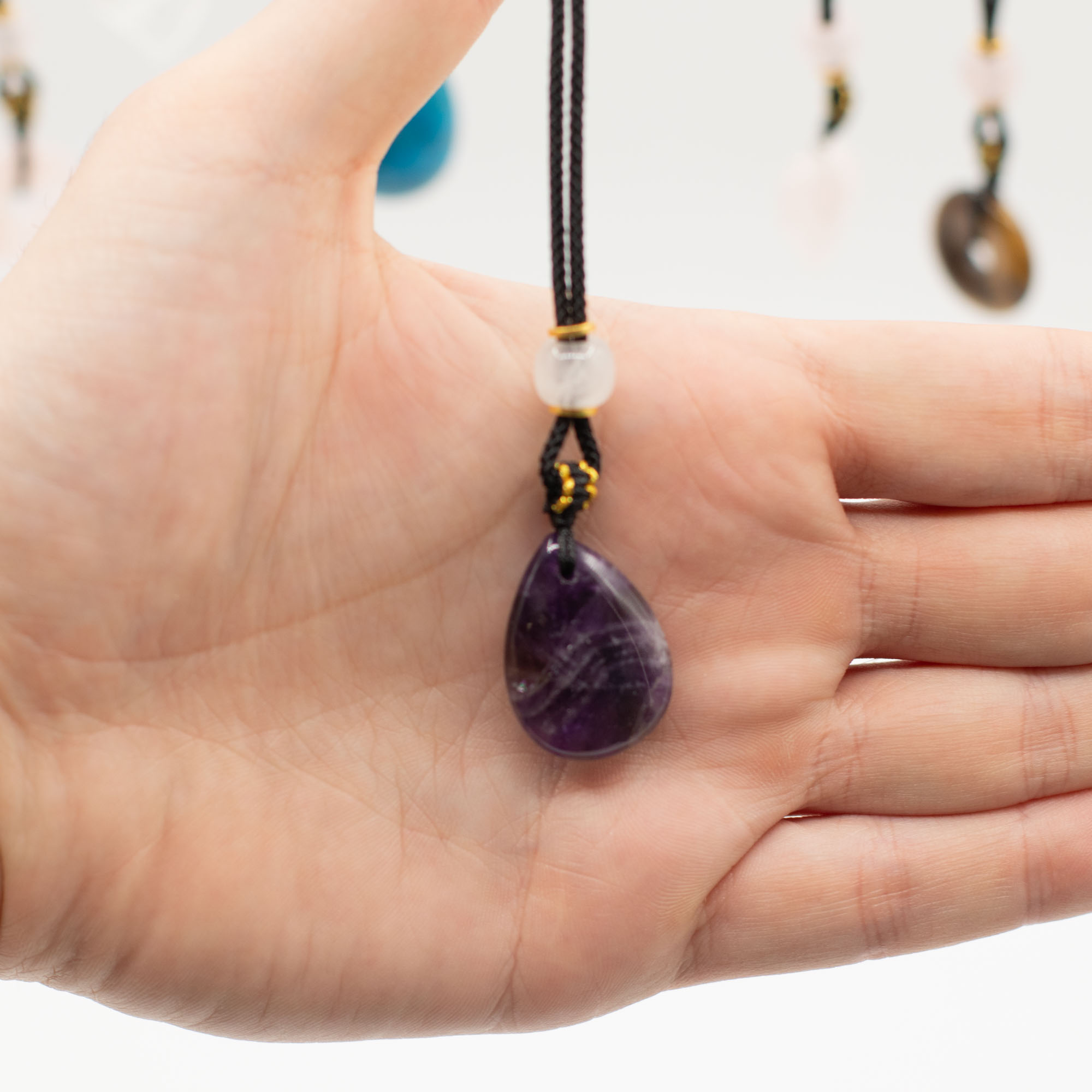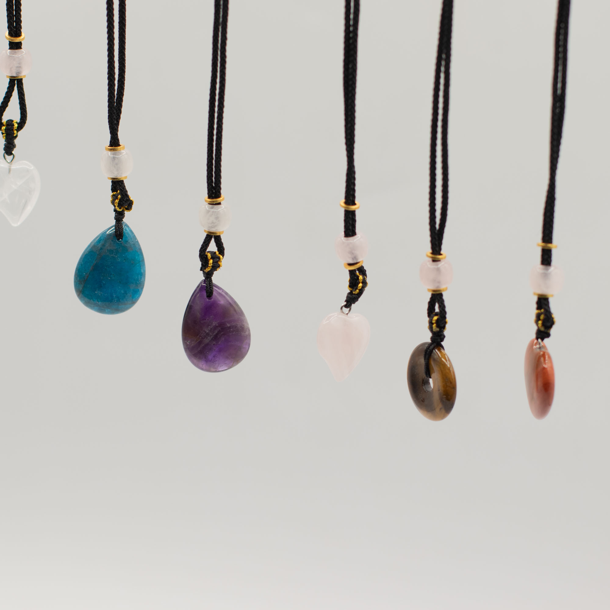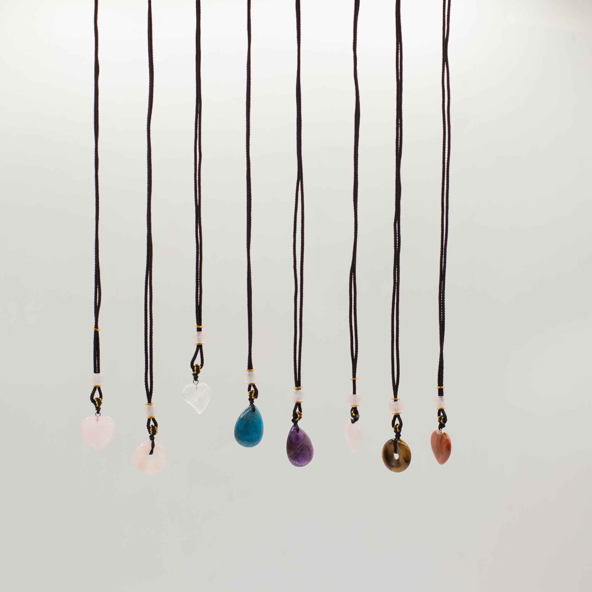 Scopri un’opzione di gioielleria delicata e piena di significato con le collane con cordino e pendenti con pietre semipreziose – Collezione Cuori & Altro, in vendita all'ingrosso. Questo set mette in risalto pendenti in pietre semipreziose naturali lucide, con forme a cuore e design morbidi e fluidi, perfetti per negozi di articoli da regalo, rivenditori di cristalli e boutique.
