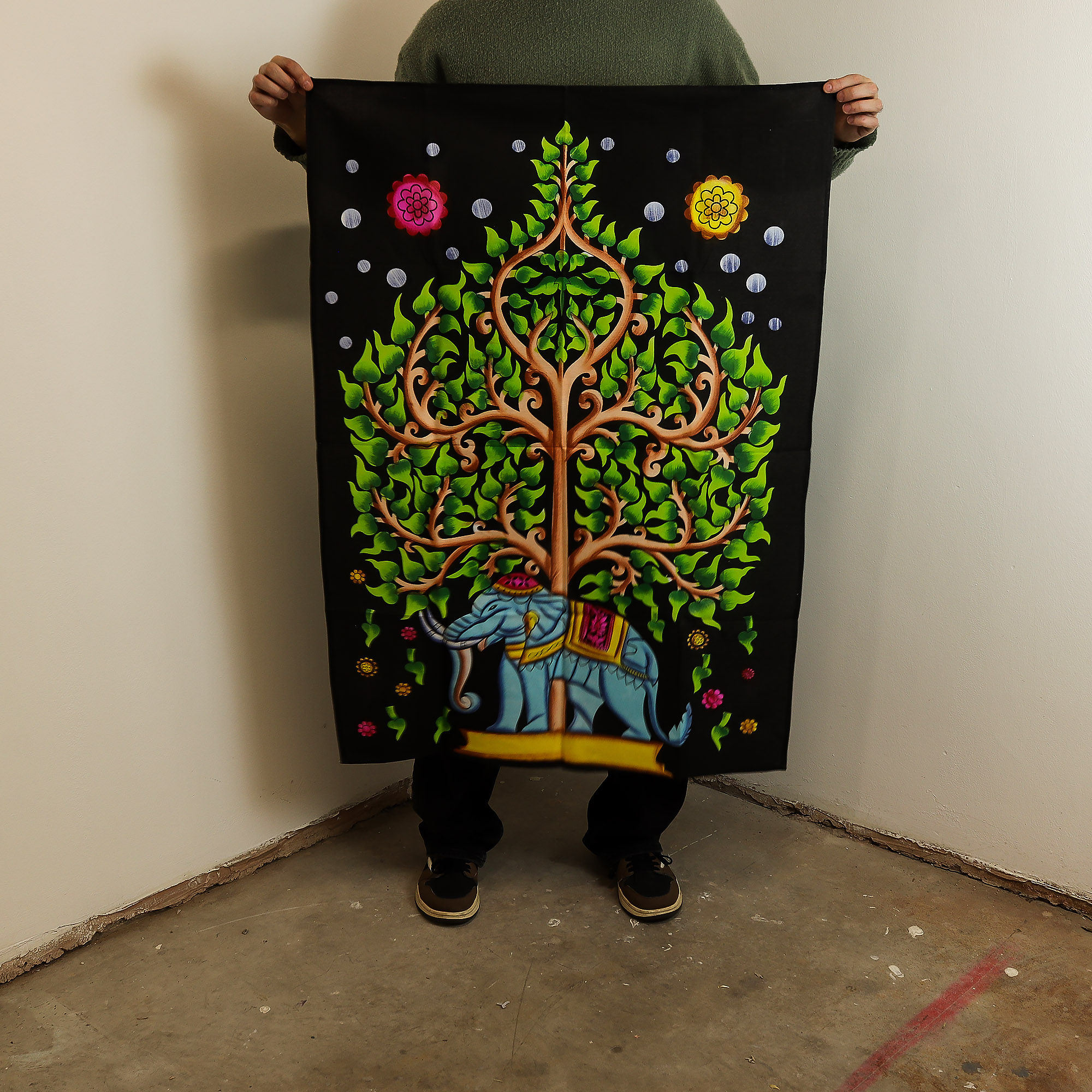 Con una dimensione di 70x110 cm, questo arazzo può essere utilizzato come decorazione da parete, copriletto o addobbo per festival. Ogni articolo è realizzato a mano in India e confezionato singolarmente in una busta protettiva trasparente con etichetta, pronta per l’esposizione in negozio.