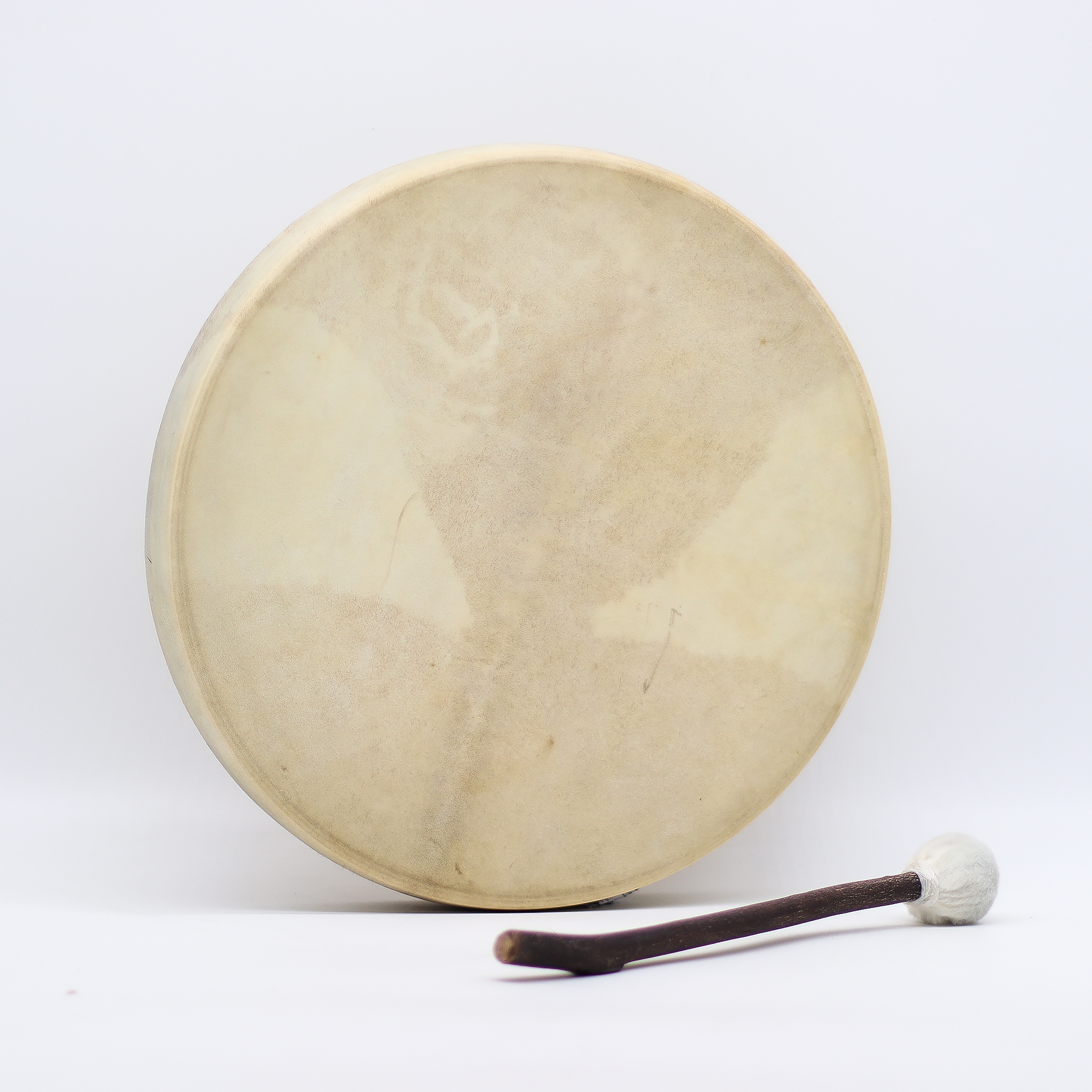 A rendere unico questo strumento è l’impugnatura posteriore, finemente intagliata a mano a forma di testa di drago. Il drago, simbolo senza tempo di trasformazione, forza e potere spirituale, conferisce un impatto visivo straordinario e un significato profondo. Questo dettaglio raffinato eleva il tamburo da semplice strumento musicale a pezzo d’arte di pregio, capace di attrarre musicisti, praticanti spirituali e collezionisti.