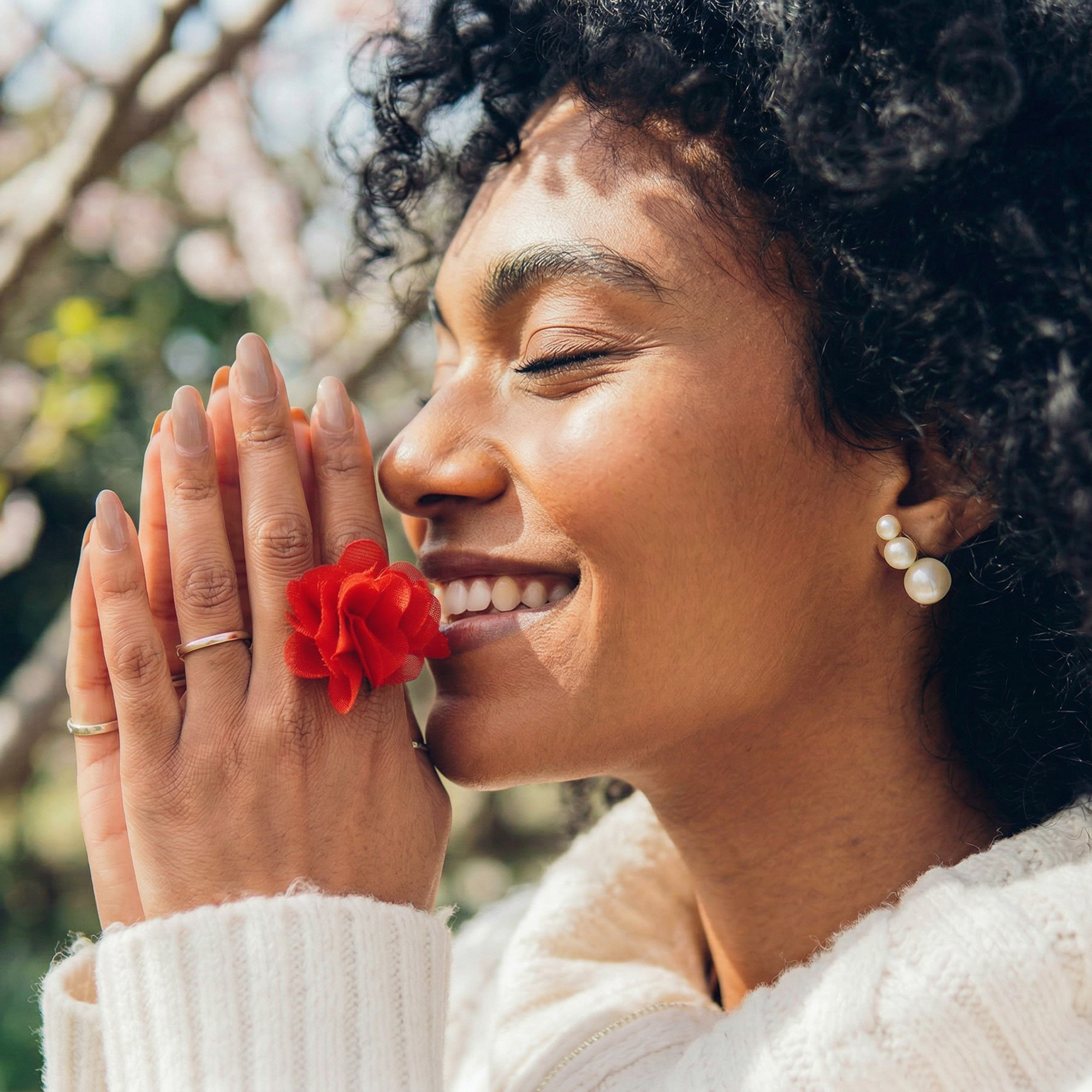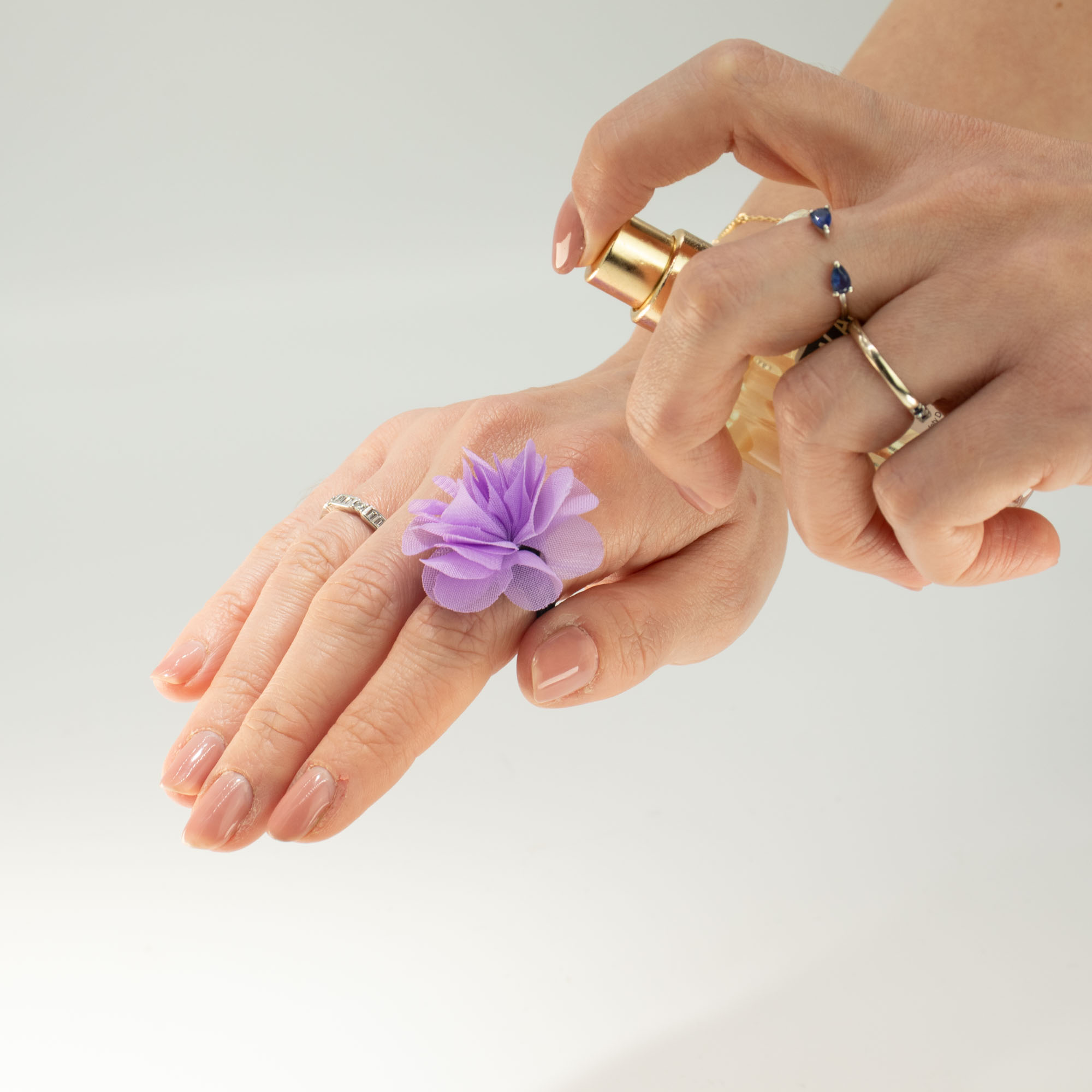Basta spruzzare la fragranza direttamente sui petali di chiffon. Il tessuto leggero assorbe il profumo e lo diffonde gradualmente con il movimento, creando un'esperienza olfattiva leggera e delicata senza applicare il profumo direttamente sulla pelle. È un modo semplice e pratico per godere di una fragranza in modo discreto e indossabile.