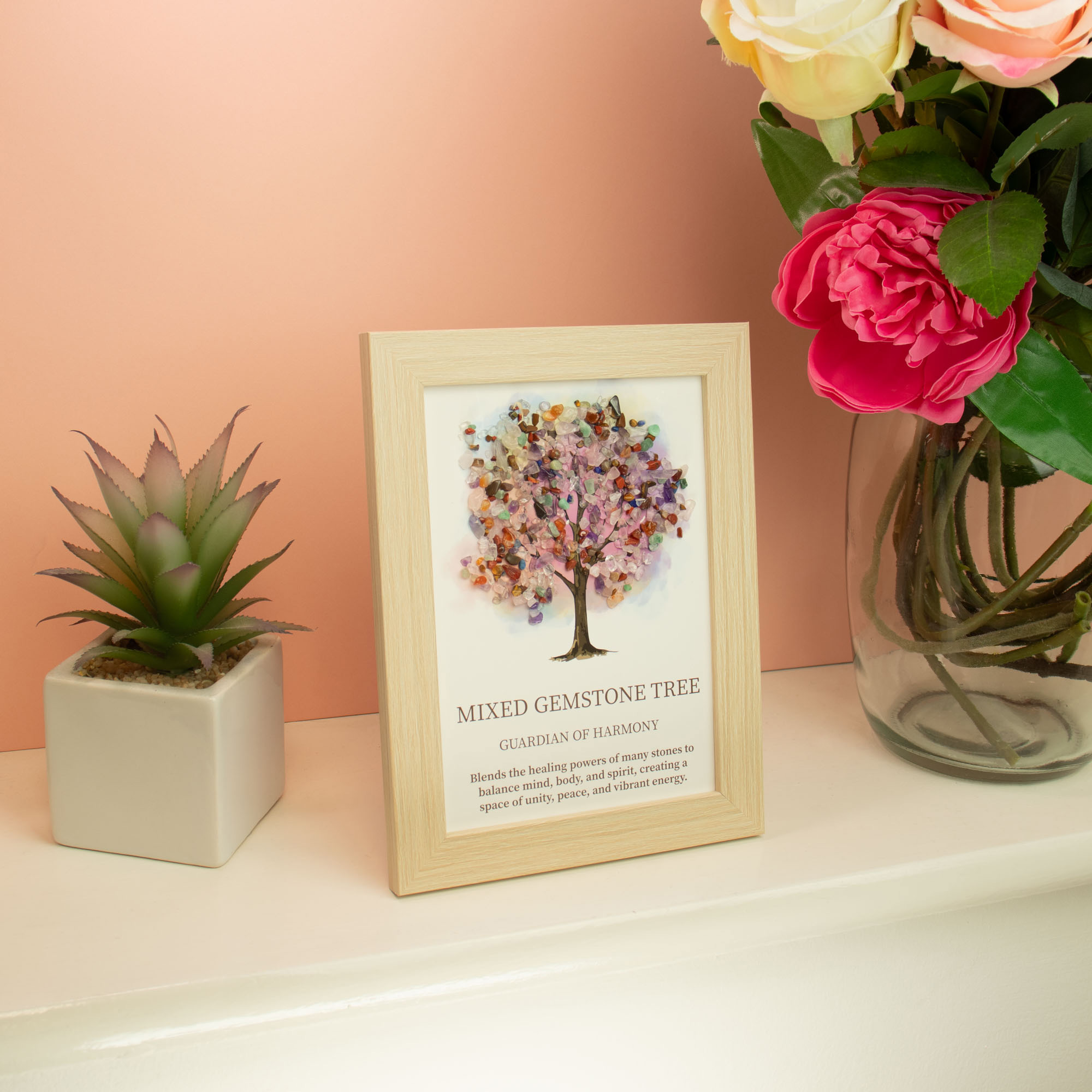 Il quadro con pietre semipreziose “Albero della Vita” - multicolore, in vendita all'ingrosso, celebra colore, equilibrio e unità attraverso una vibrante combinazione di frammenti pietre. La chioma dell’albero è composta da una selezione mista di pietre semipreziose, disposte con cura per creare una superficie stratificata e multitonale dal sorprendente effetto tridimensionale.