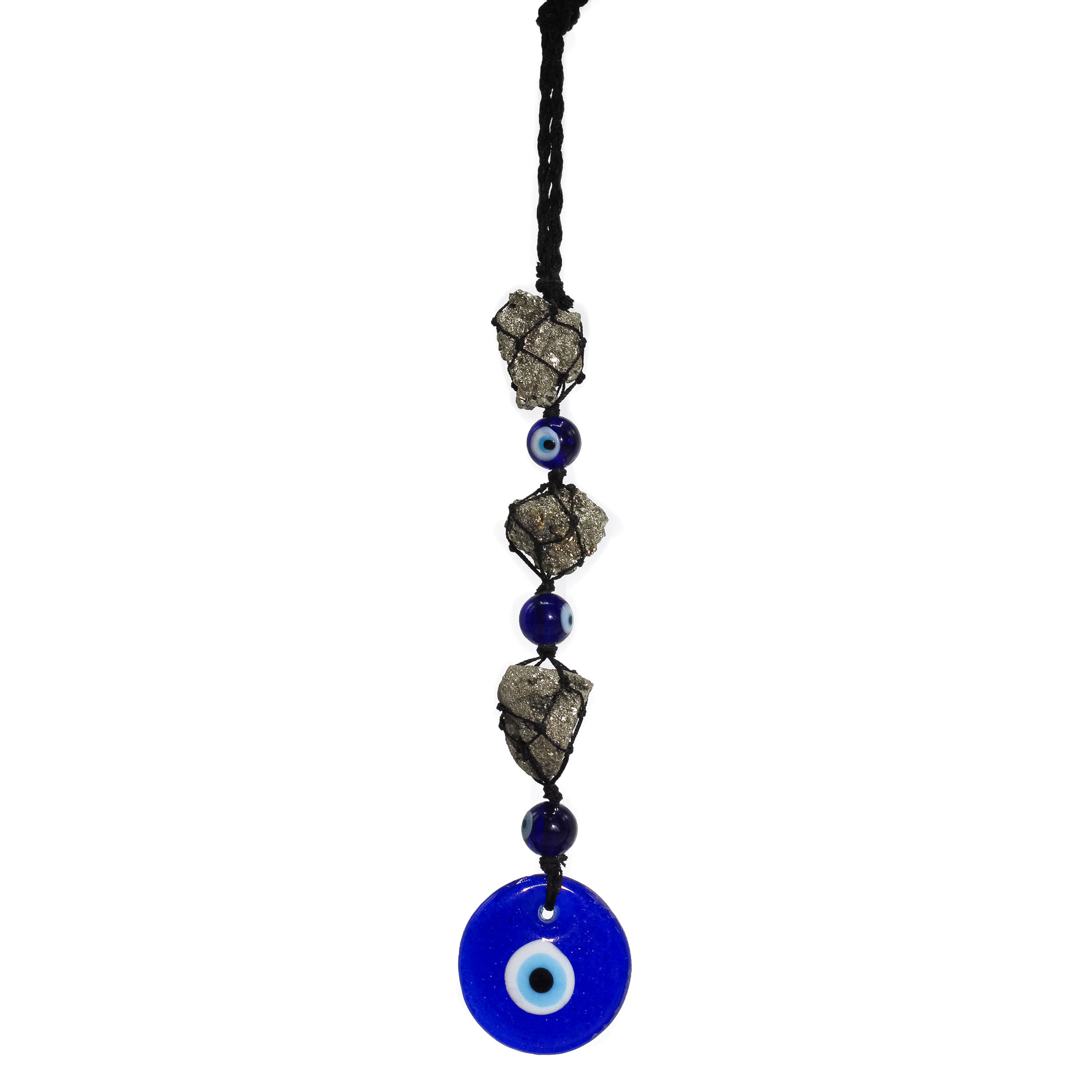 Presenta ai tuoi clienti un prodotto che unisce con eleganza design moderno e simbolismo spirituale: il Ciondolo da Appendere con Pietre e Perline di Pirite e Occhio Protettivo.