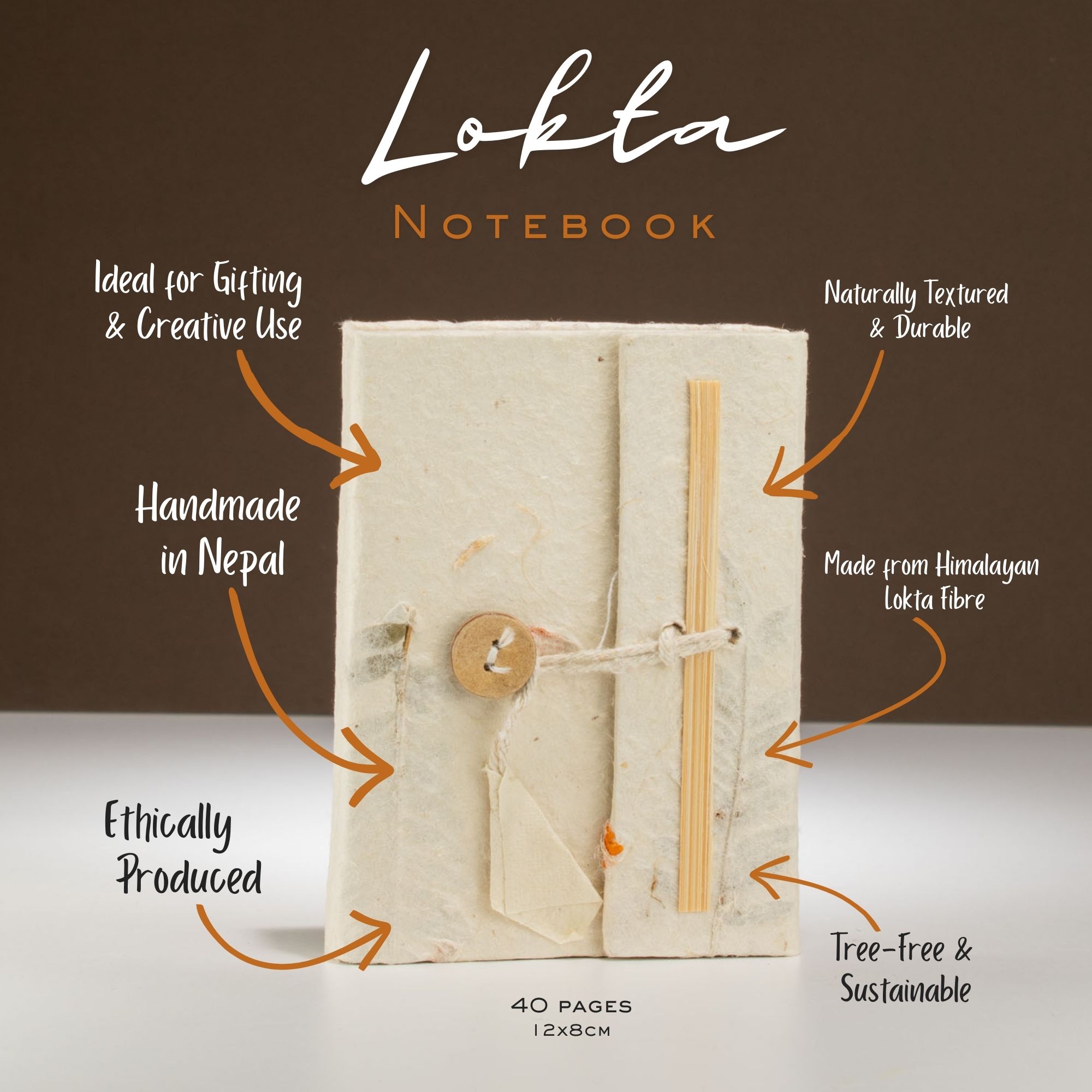 La carta Lokta è apprezzata per la sua resistenza, durata nel tempo e texture ricca. A differenza delle carte industriali, presenta una superficie fibrosa e leggermente irregolare che le conferisce un carattere autenticamente fatto a mano. È resistente agli strappi e all’umidità, ed è molto utilizzata per incarti, rilegature, scrapbooking e creazioni artigianali.