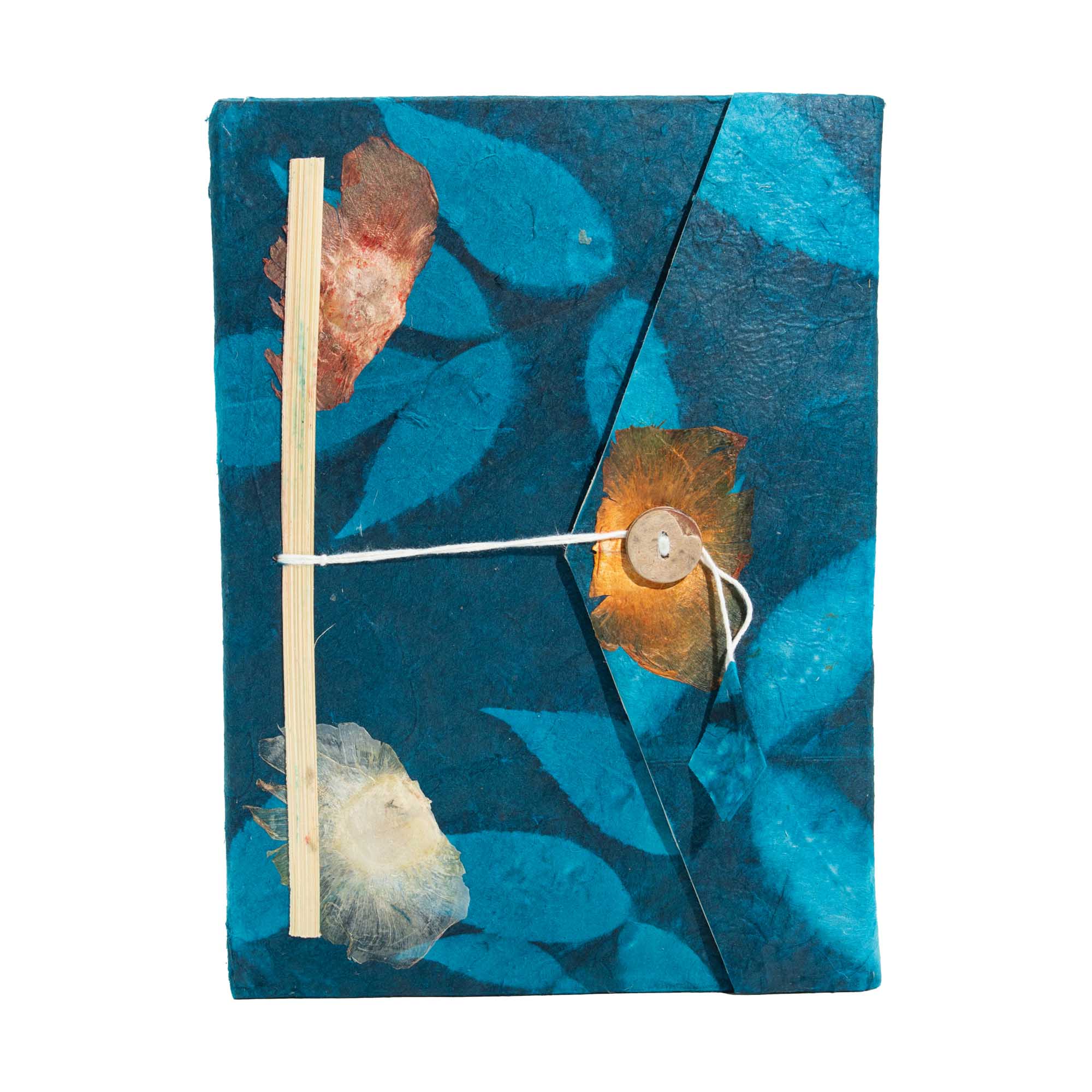 Questo taccuino grande in carta Lokta floreale blu, in vendita all'ingrosso, unisce la tradizionale lavorazione della carta himalayana a un meraviglioso design floreale, creando un pezzo immediatamente riconoscibile come speciale. Realizzato a mano in Nepal con carta Lokta proveniente da fonti sostenibili, ogni taccuino offre sottili variazioni e una qualità tattile che i prodotti industriali non possono replicare.