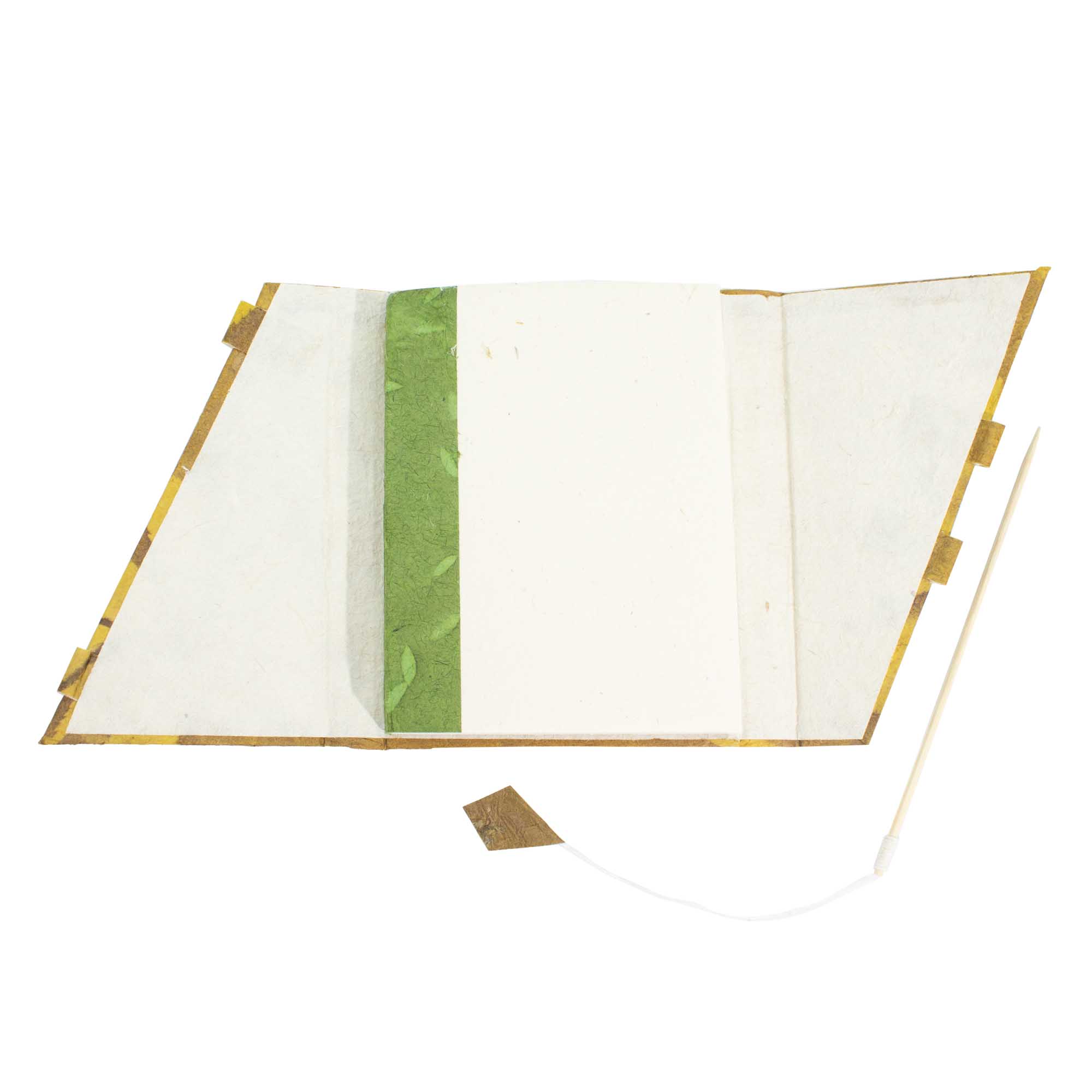All’interno, 45 pagine fatte a mano con tradizionale carta Lokta offrono una consistenza unica, ricca di carattere artigianale, che le produzioni industriali non possono replicare. Leggero, pratico e dal design distintivo, è la scelta ideale sia come regalo elegante sia come accessorio di cancelleria essenziale per la vita di tutti i giorni.