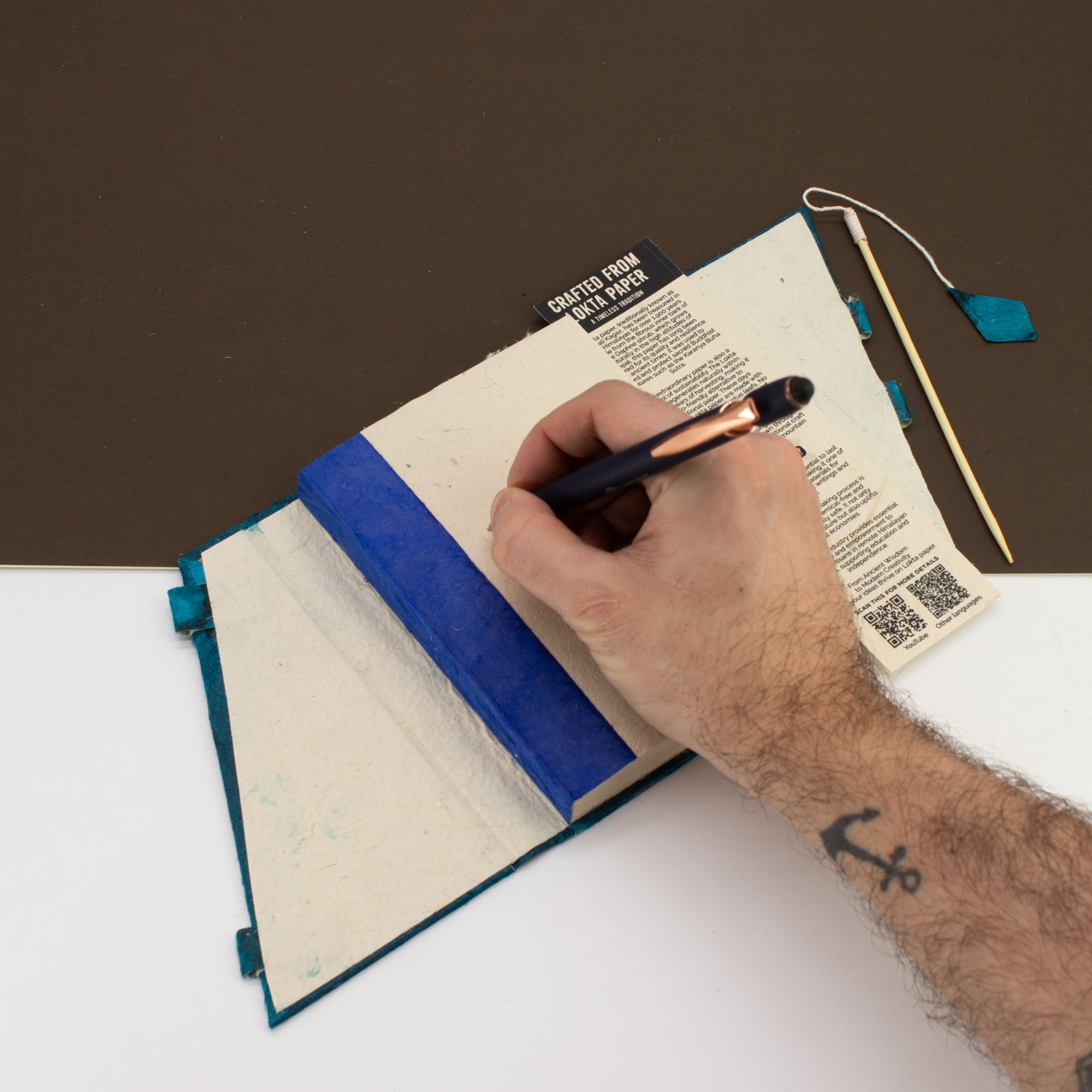 All’interno, 45 pagine fatte a mano con tradizionale carta Lokta offrono una consistenza unica, ricca di carattere artigianale, che le produzioni industriali non possono replicare. Leggero, pratico e dal design distintivo, è la scelta ideale sia come regalo elegante sia come accessorio di cancelleria essenziale per la vita di tutti i giorni.