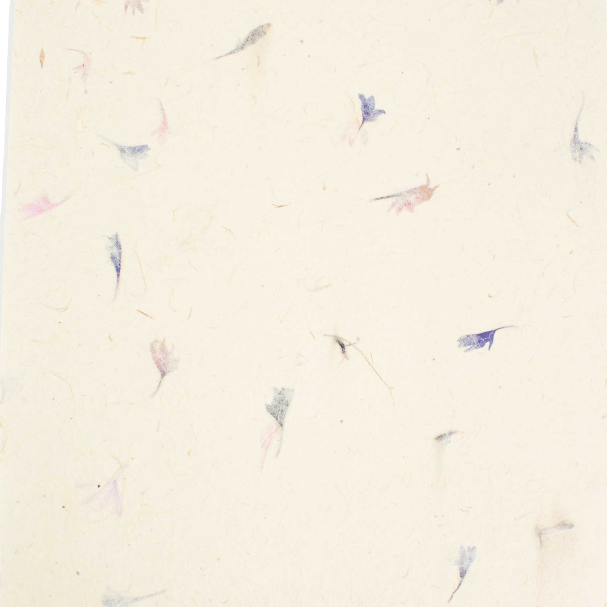Questa carta Lokta A4, realizzata a mano con metodi tradizionali in Nepal, è impreziosita da petali di fiordaliso naturali incastonati direttamente nel foglio. Ricavata dalla corteccia fibrosa della pianta Dafne, è rinomata per resistenza, consistenza e lunga durata, offrendo un aspetto autenticamente artigianale.