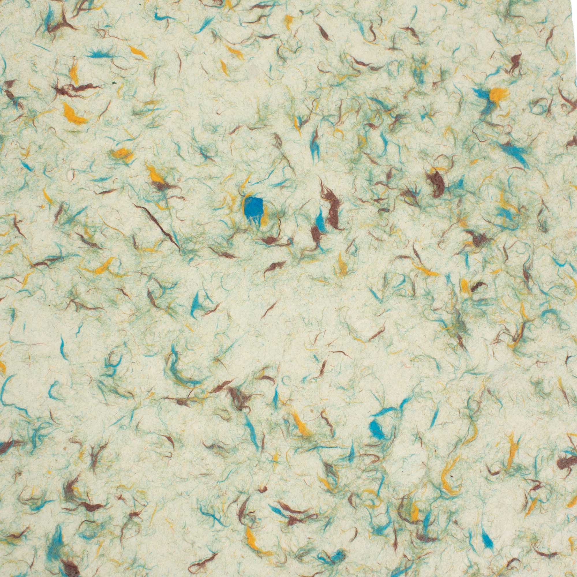 Questa carta Lokta A4, realizzata a mano con metodi tradizionali in Nepal, è impreziosita da cotone verde, calendula, fiordaliso e fiori misti incastonati direttamente nel foglio. Ricavata dalla corteccia fibrosa della pianta Dafne, è rinomata per resistenza, consistenza e lunga durata, offrendo un aspetto autenticamente artigianale.