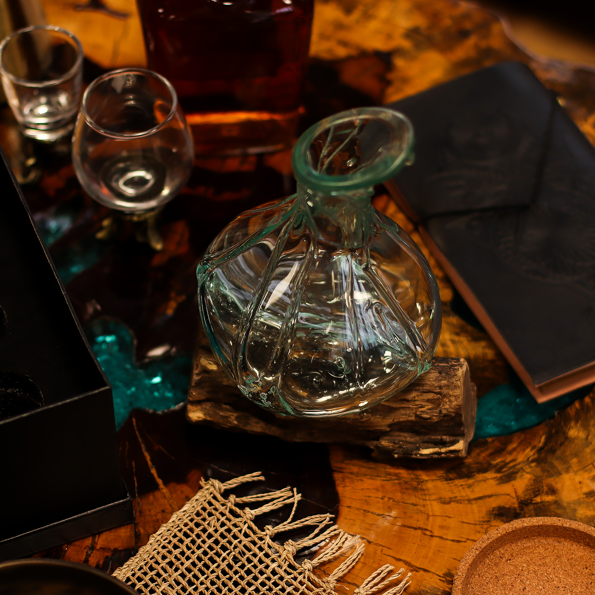 Questo decanter in vetro fuso rappresenta l’artigianato balinese nella sua forma più raffinata.