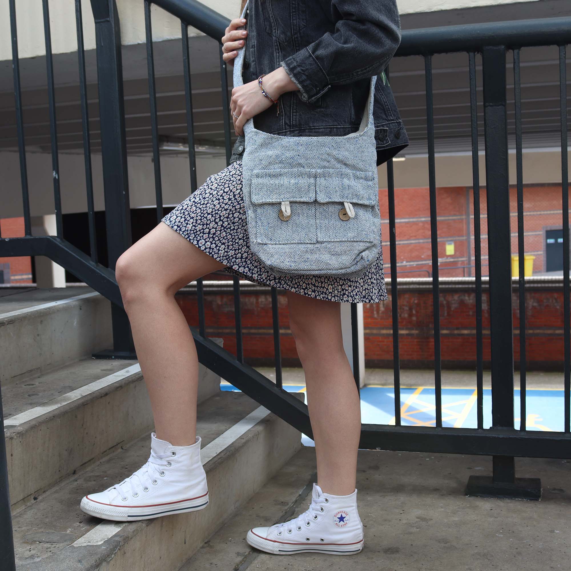 Esplora l'incantevole mondo dell'eco-chic con le nostre borse con due tasche frontali - composizione denim - media, in vendita all'ingrosso.