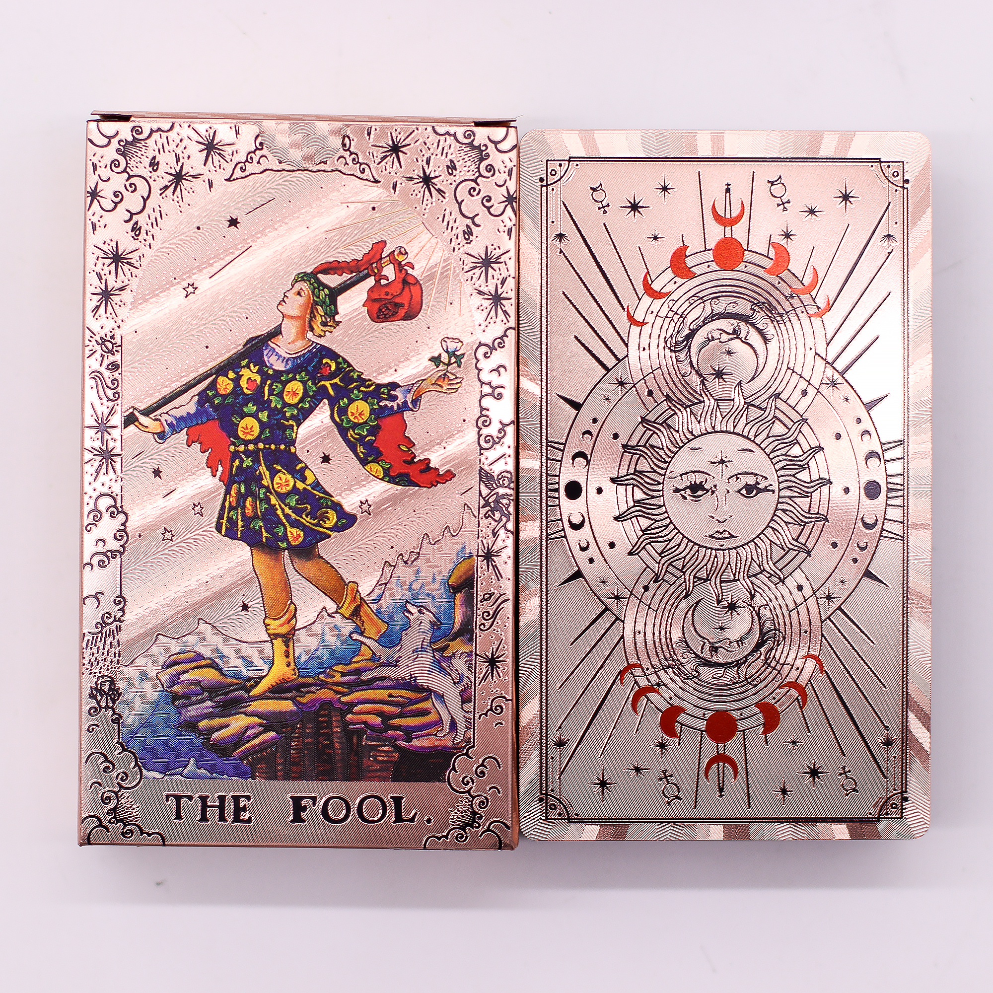 Set di Carte dei Tarocchi con Dettagli in Lamina Oro Rosa – Fasi Lunari