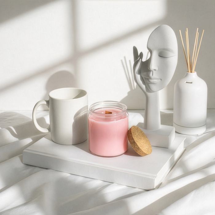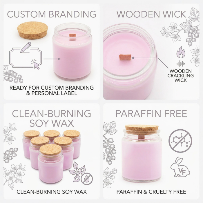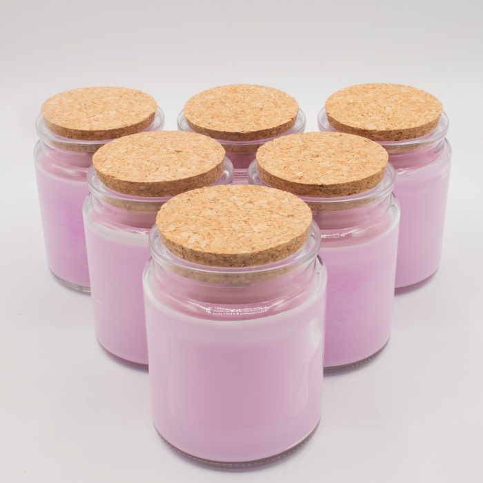 Introduci un'intramontabile fragranza di lavanda nella tua gamma di prodotti con la candela di soia con stoppino in legno "luna del lupo", in vendita all'ingrosso. Questa candela è disponibile in un formato senza etichetta, pronta per essere personalizzata, ideale per progetti di private label o concept di vendita al dettaglio personalizzati. La delicata tonalità lavanda della cera si abbina splendidamente al vasetto in vetro trasparente e al coperchio in sughero naturale, creando una presentazione semplice ed elegante che si adatta a diversi stili di branding.
