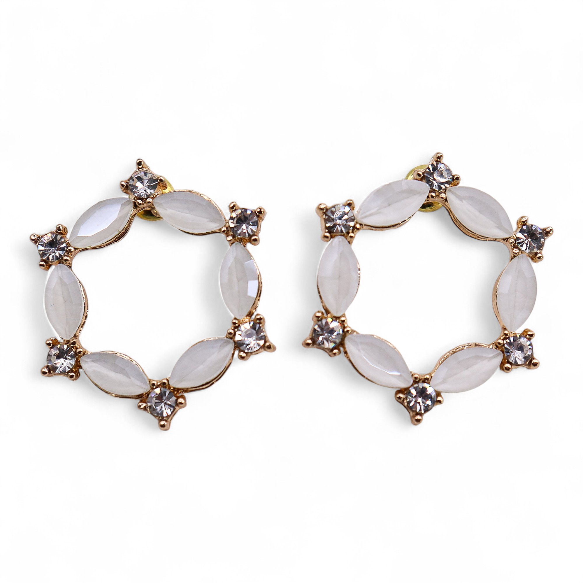 Finitura: Vetro con accenti perlati, acciaio inossidabile lucido Materiale: Acciaio inossidabile con dettagli in vetro — leggeri, ipoallergenici e resistenti all’ossidazione.