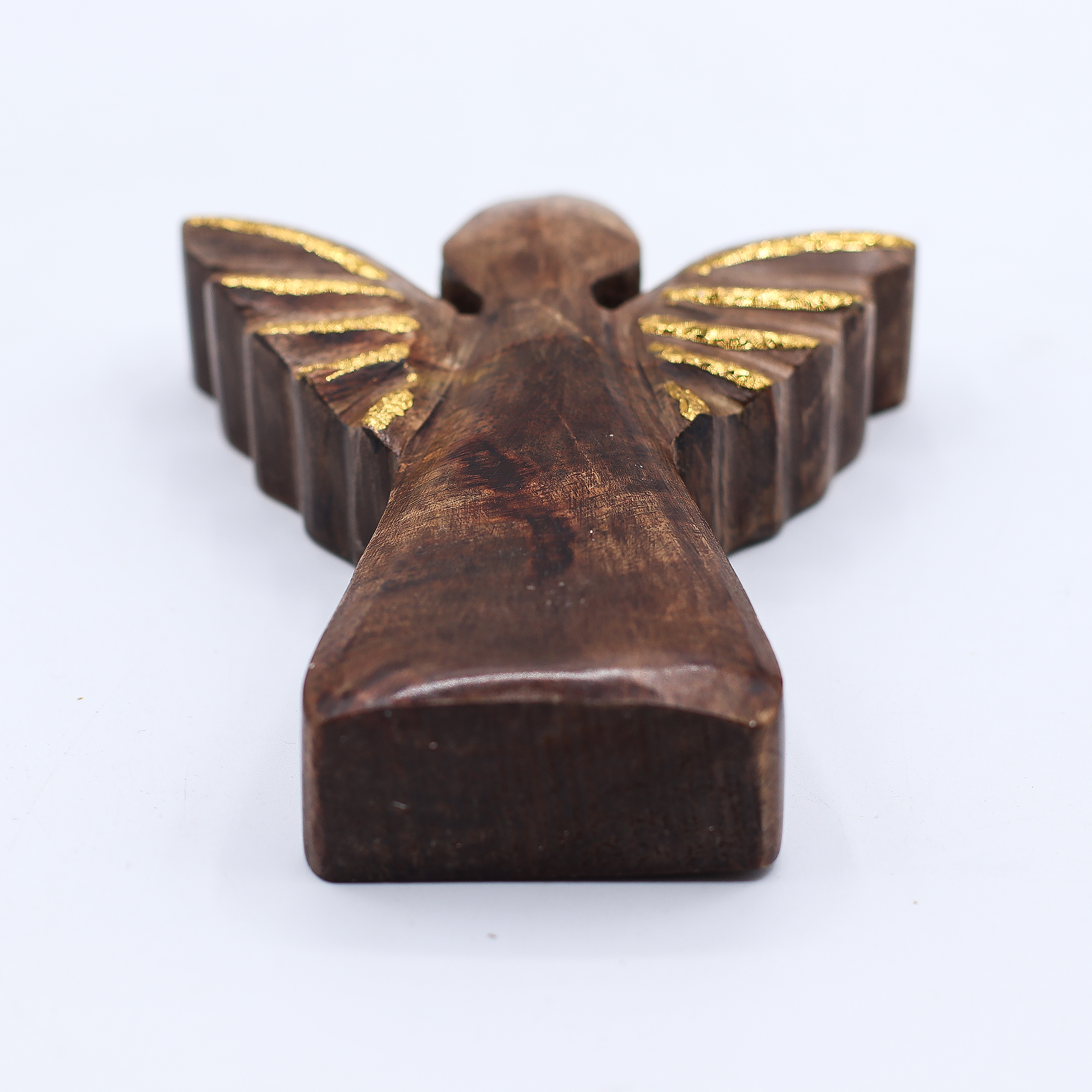 Angelo in Legno di Mango con Dettagli Dorati – 12cm