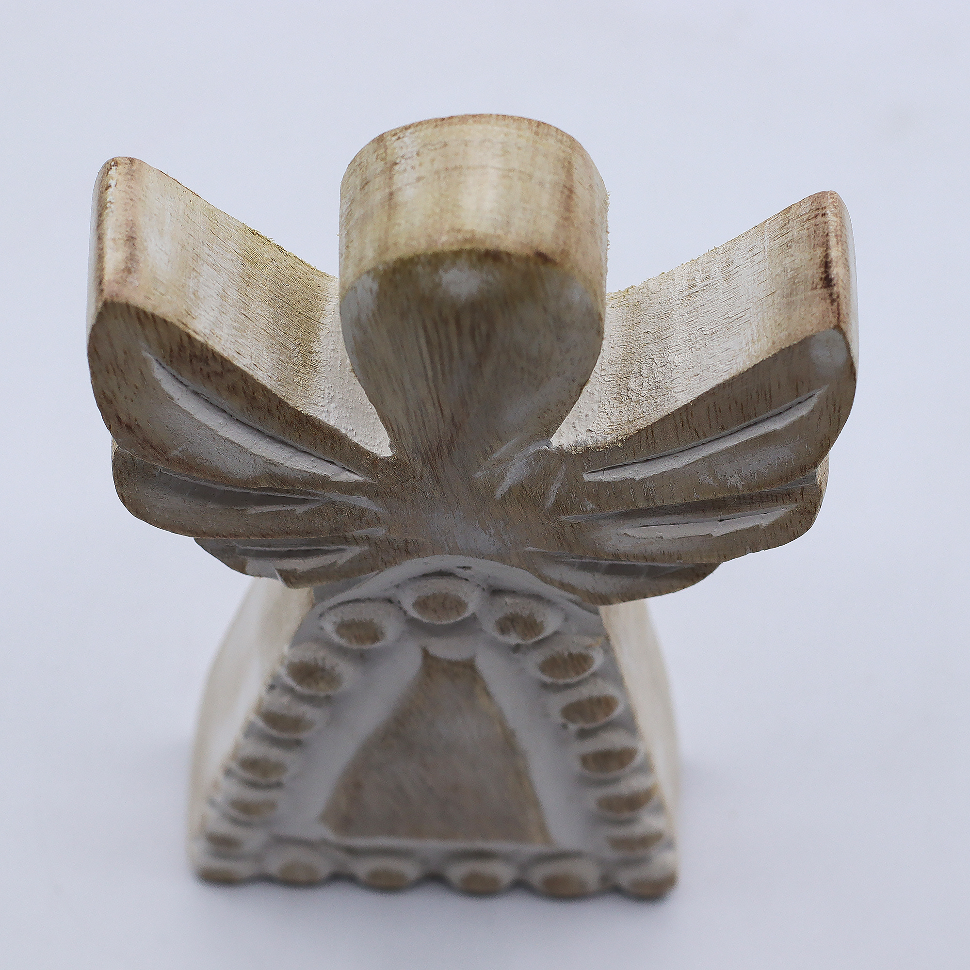Angelo in Legno di Mango – Finitura Decapata Bianca – 13cm (Vendita all’Ingrosso)