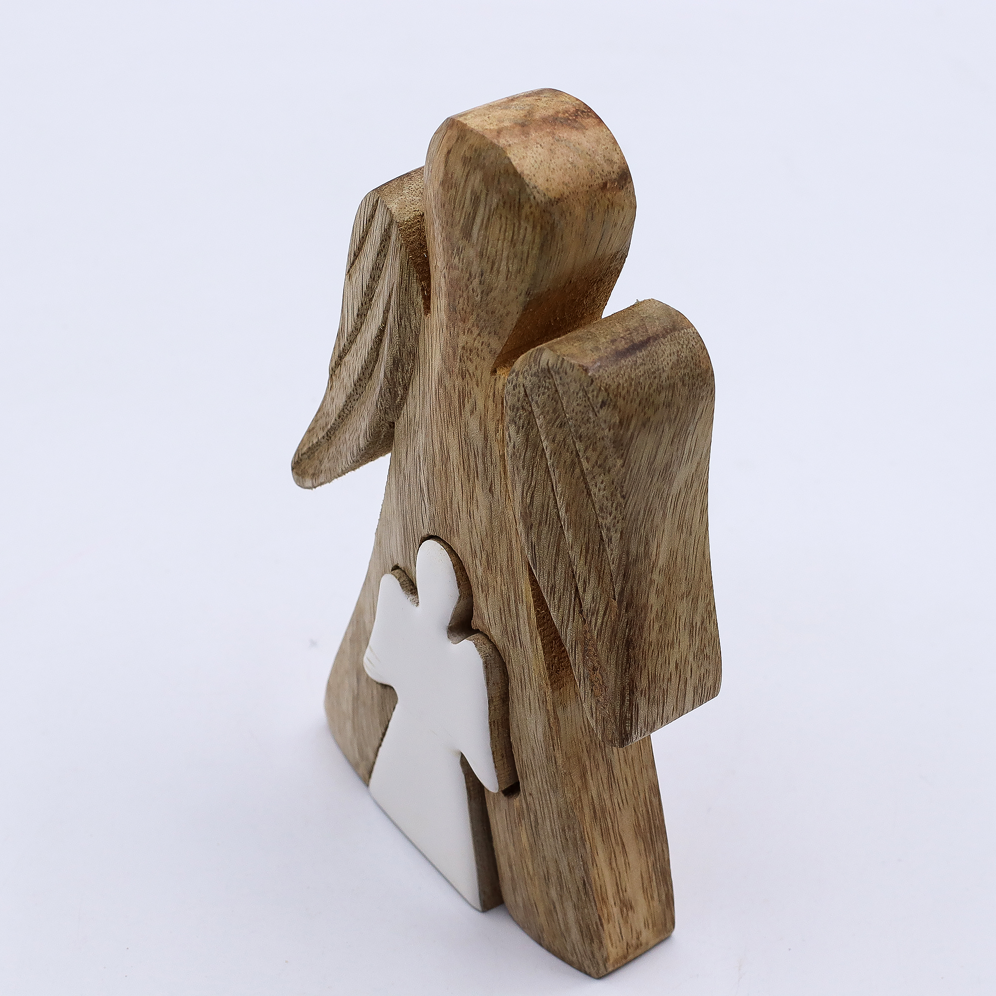 Angelo in Legno di Mango – Smalto Bianco con Angelo Intagliato – 15cm (Vendita all’Ingrosso)