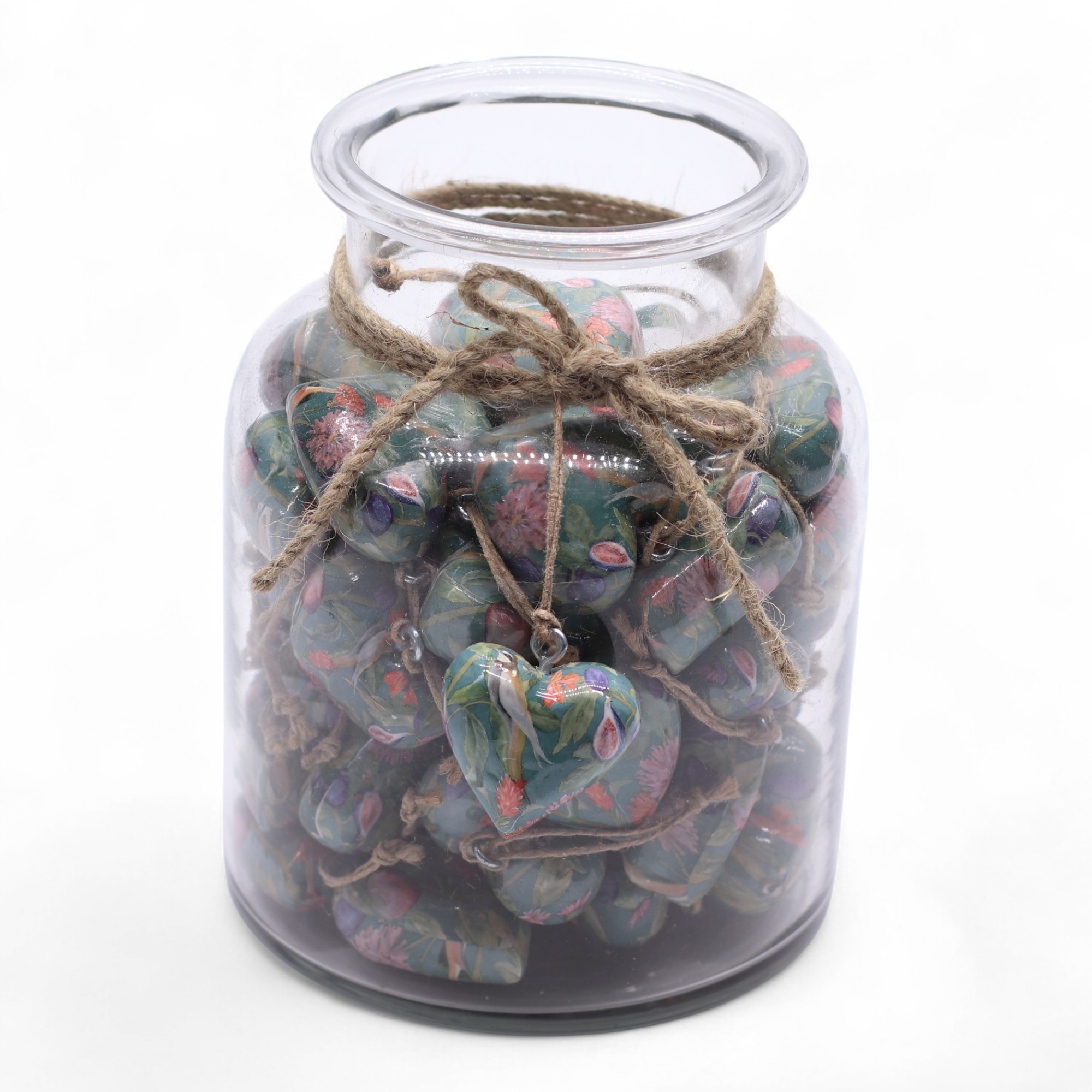 Arricchisci la tua selezione stagionale con questo affascinante barattolo espositore contenente circa 50 Cuori Decorativi in Legno Bird & Floral. Ogni cuore presenta un dolce motivo con uccellino e fiori, che aggiunge un tocco delicato e fiabesco alle decorazioni natalizie, ai regali sentiti o agli accenti d’arredo più luminosi.
