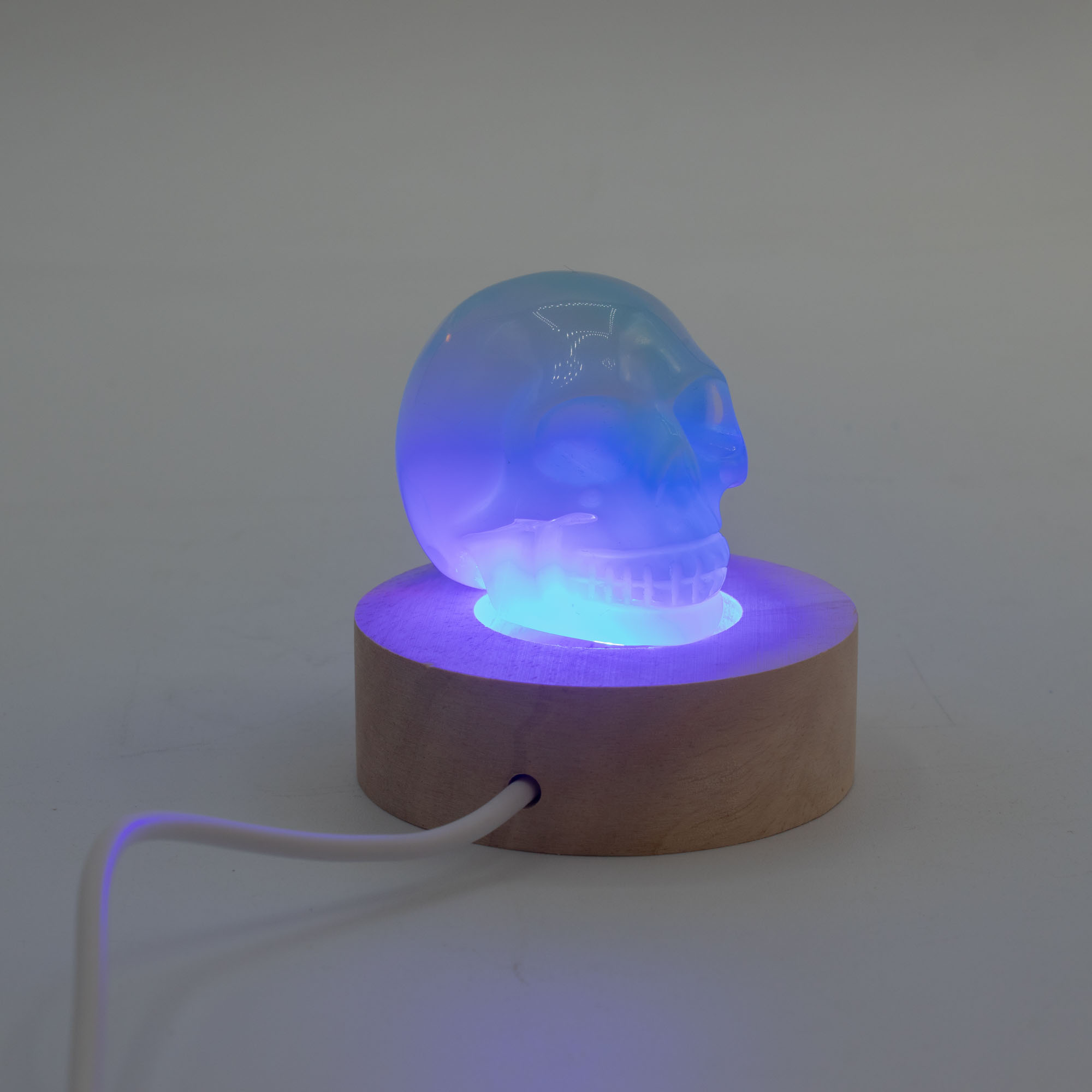 Il supporto LED USB rotondo in legno da 6 cm – Multicolore, in vendita all'ingrosso, è pensato per prodotti che richiedono un impatto visivo maggiore. Compatto ma di grande effetto, si adatta perfettamente a cristalli, teschi, sculture, pezzi in vetro o decorazioni in resina, proiettando la luce verso l’alto con audaci effetti cromatici cangianti.