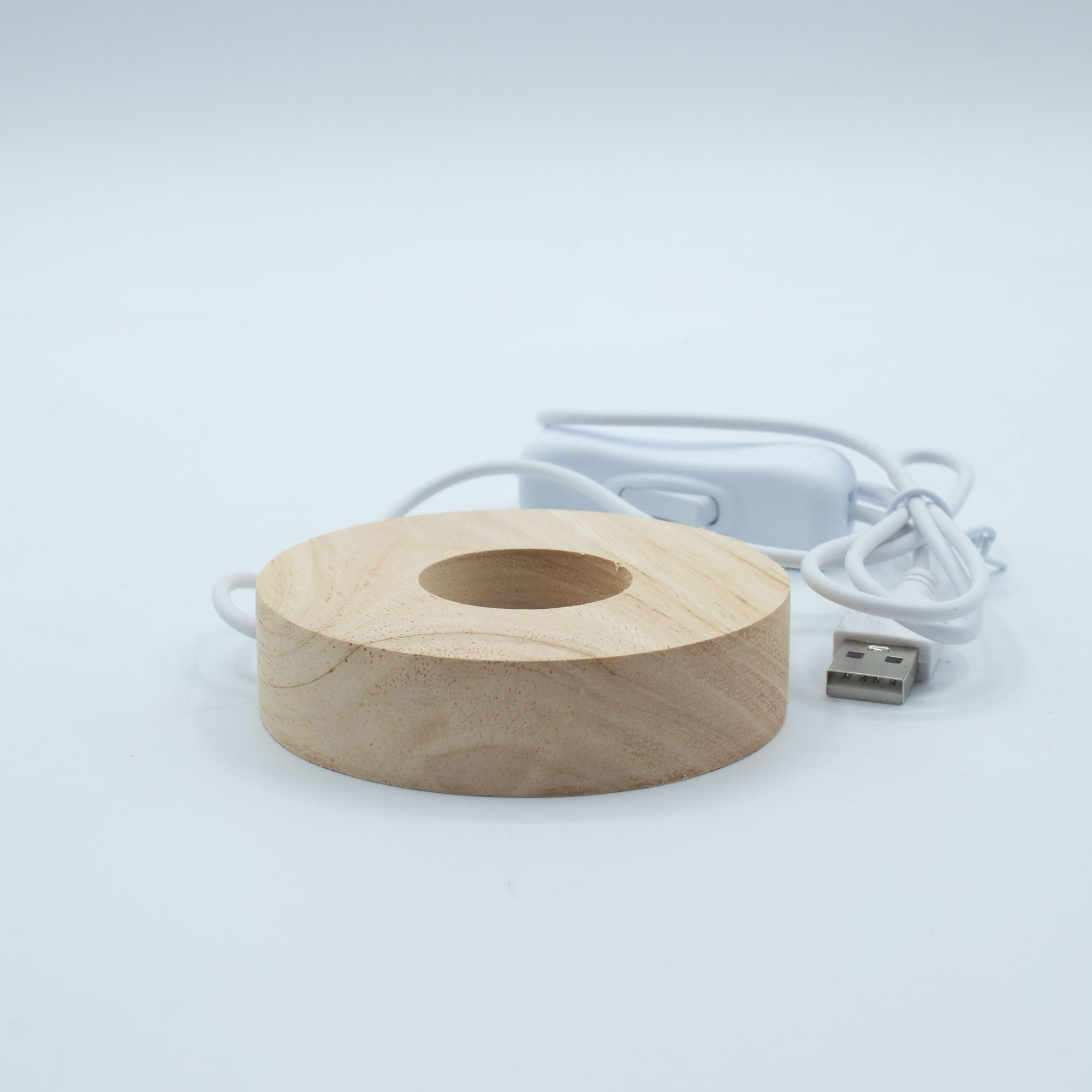 Il supporto LED USB rotondo in legno da 8 cm, in vendita all'ingrosso, è una soluzione espositiva compatta ma di grande impatto, progettata per mettere in risalto con precisione gli oggetti più piccoli. Posizionato sotto cristalli, ornamenti in vetro o decorazioni in resina, proietta la luce verso l’alto valorizzando colori, trasparenze e dettagli.