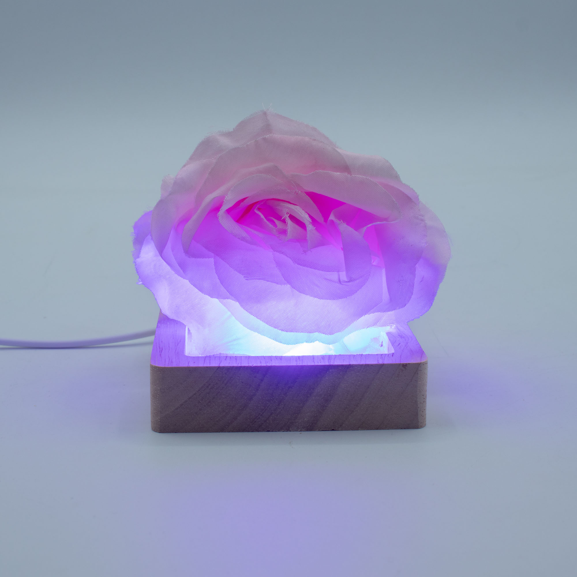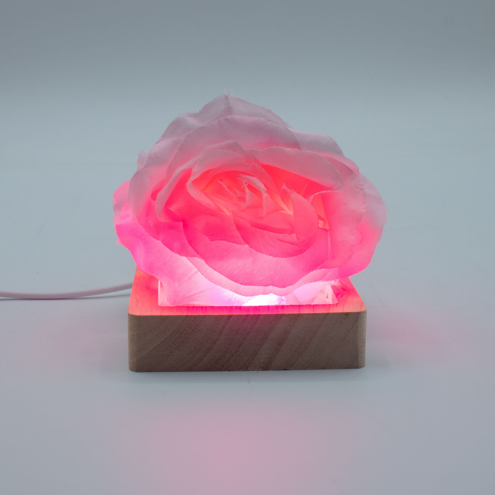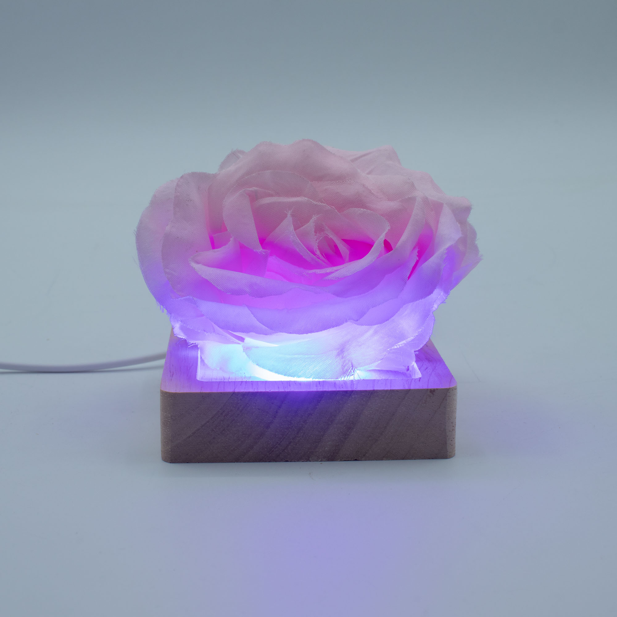 Il supporto LED USB quadrato in legno da 8 cm – Multicolore, in vendita all'ingrosso, è pensato per prodotti che richiedono un impatto visivo maggiore. Compatto ma di grande effetto, si adatta perfettamente a cristalli, teschi, sculture, pezzi in vetro o decorazioni in resina, proiettando la luce verso l’alto con audaci effetti cromatici cangianti.