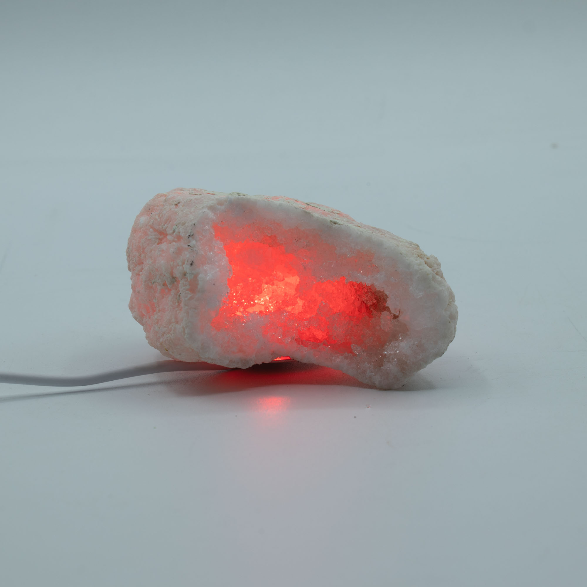 Il LED è dotato di colori cangianti che scorrono attraverso tonalità intense e vibranti, aggiungendo movimento e brillantezza a formazioni naturali e oggetti decorativi. Questo effetto di illuminazione dinamica valorizza al massimo geodi, gruppi di quarzo, opere d’arte in resina e pietre scolpite, facendo emergere dettagli interni e sfumature che prendono vita sotto la luce cangiante.